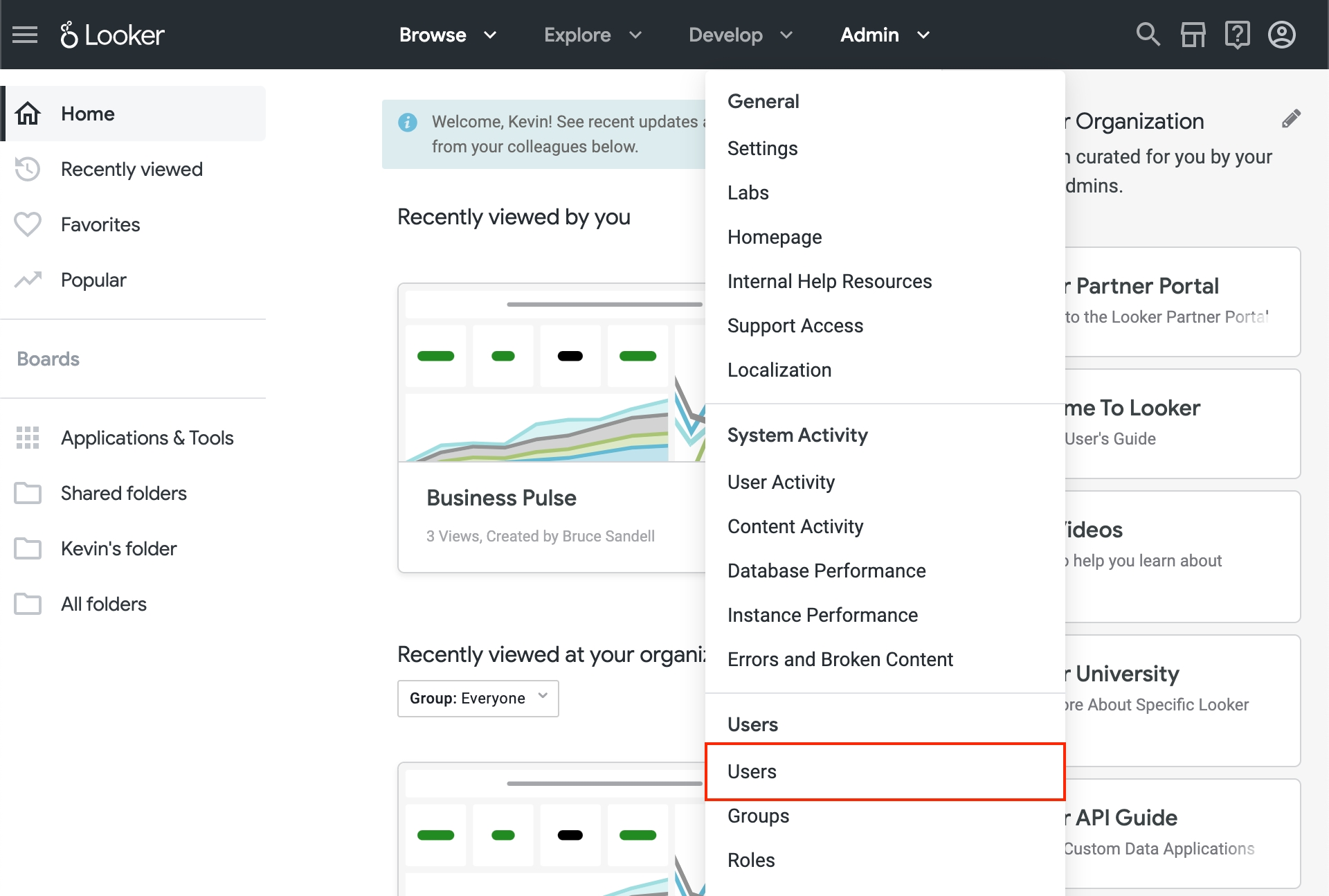 Go to your Looker dashboard: https://company.cloud.looker.com.